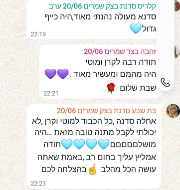 הסדנאות חווייתיות מאד ומשפחתיות, כאשר יד ימיני קרן ואשתי האהובה משלימה אותי .